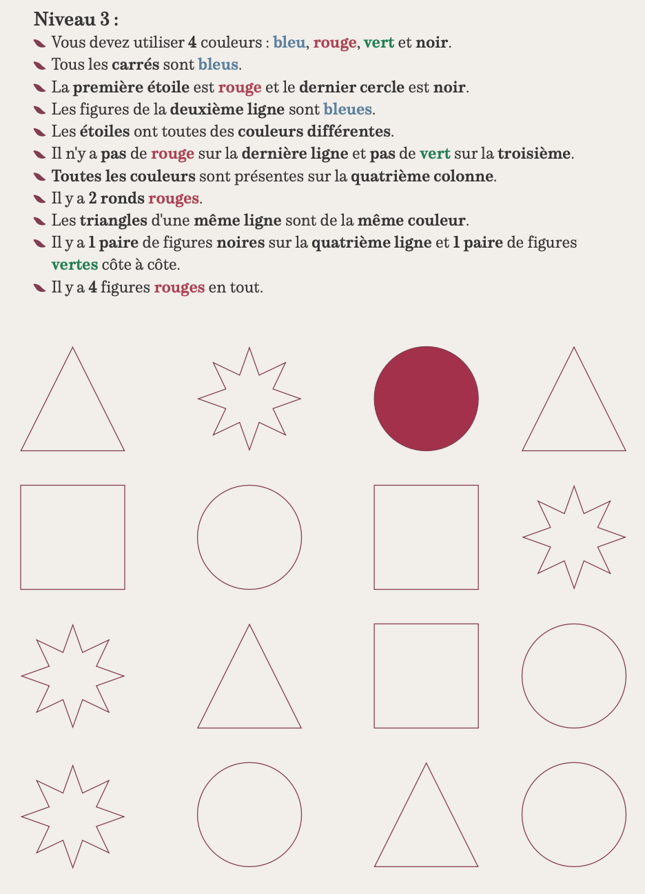 Remplir chaque carré avec des nombres tels que la somme des nombres de toutes les lignes, colonnes et diagonales, soit égale au total noté en "objectif".