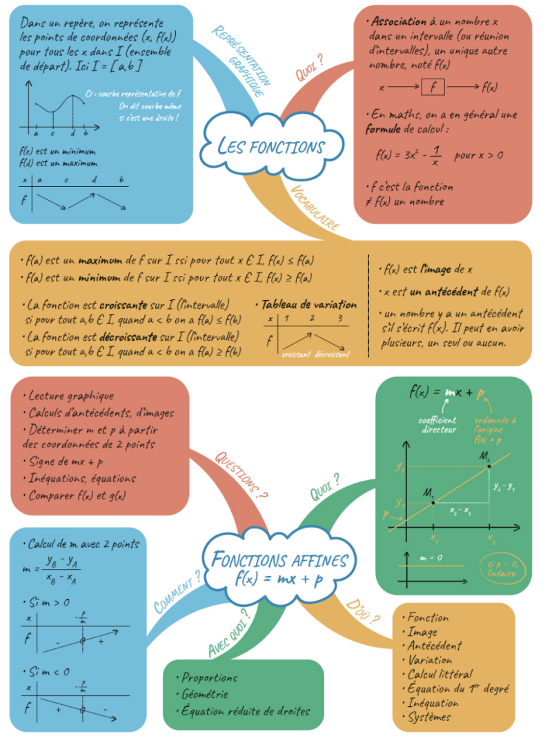 Cartes mentales sur les bases des thèmes COMMUNS vus au lycée (il n'y a donc pas d'intégrales, de fonctions trigo, etc.)